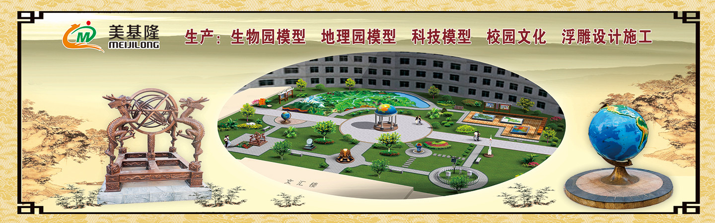 廣東順德美基隆園林藝術有限公司是集產品開發(fā) , 設計制作校園雕塑文化、地理園、生物園、生態(tài)園、科技園,浮雕、人物雕像仿真動物,綠化校園中小學實驗室配套為一體的大型教學設備企業(yè)廠家。廣東順德美基隆園林藝術有限公司自成立以來,堅持以質量立品牌、藝術求真知、專業(yè)為教育、服務守承諾的服務宗旨,致力于教育行業(yè),并為教育事業(yè)提供高品質的設計、制作、銷售、安裝等優(yōu)質的服務。